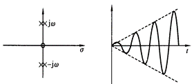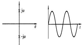 (3)边界稳定系统 ---- H(s)有一阶极点在s平面的虚轴上,其它极点都在左半s平面。