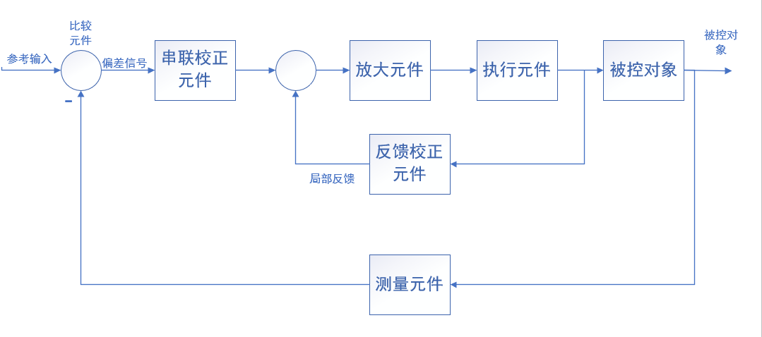 ⑤比较元件,比较测量元件检测的被控变量实际值与给定元件给出的输入量并求出二者误差