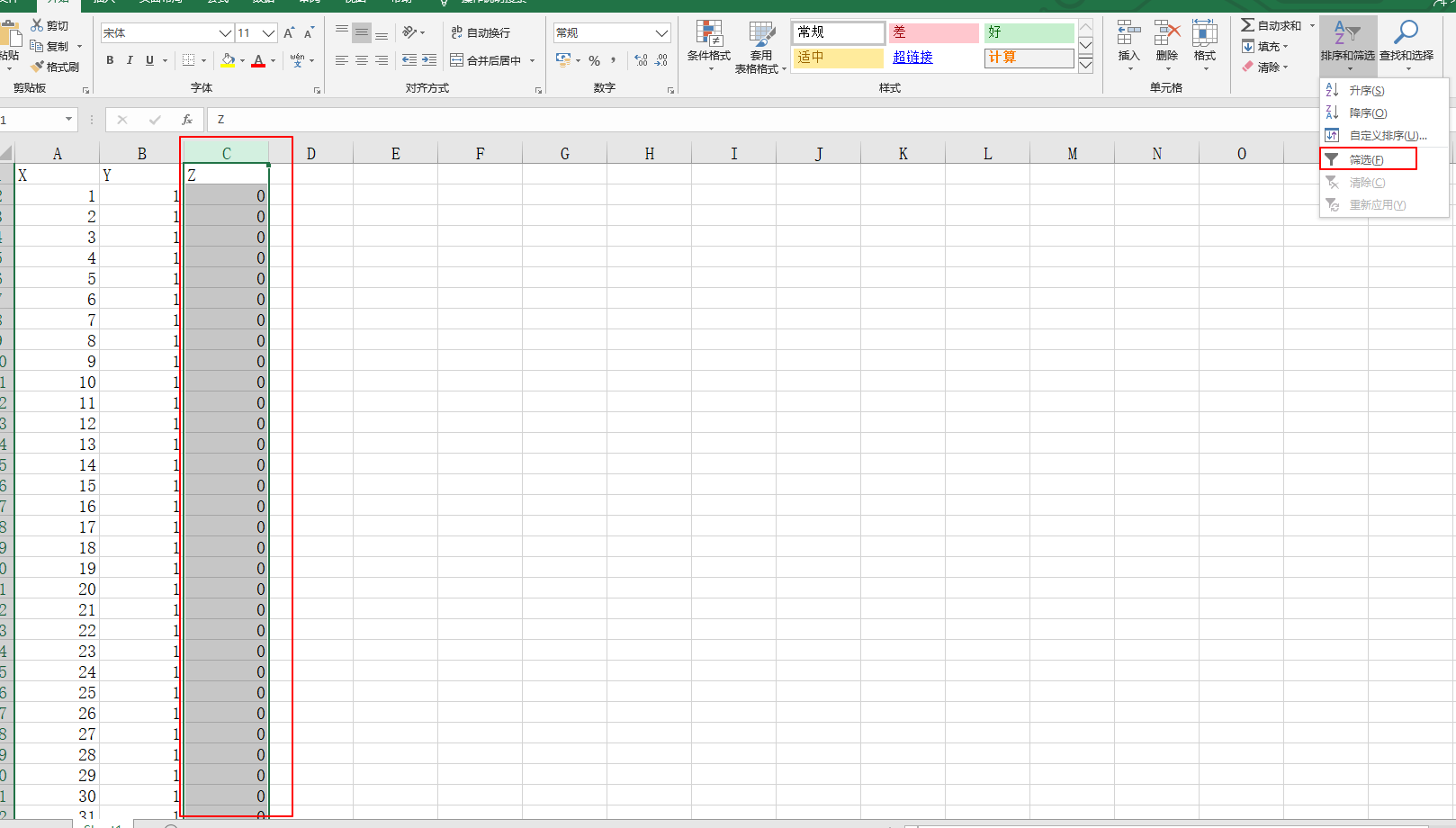 打开数据发现,z是零的情况居多。那么就只需要检测z不是零的数据即可,检索不到的数据直接赋值零。