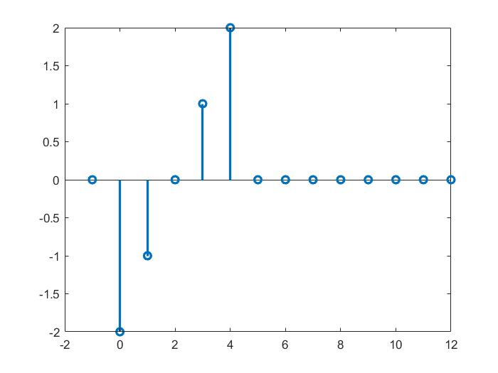 信号2的取值为[-2,-1,0,1,2],信号1可看做 δ ( n − 1 ) delta(n-1) δ(n−1).