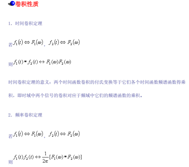 两个信号在时域乘积的傅里叶变换等于两个信号分别的傅里叶变换的卷积。