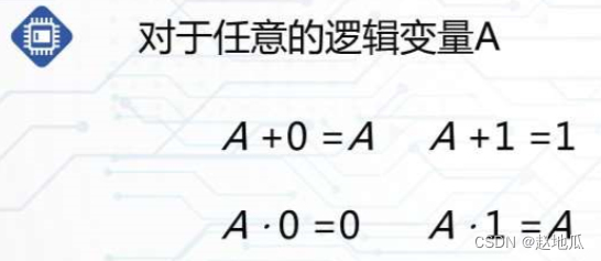 - 由一个逻辑变量集K,常量0和1,以及”或“、”与“、”非“三种基本运算构成