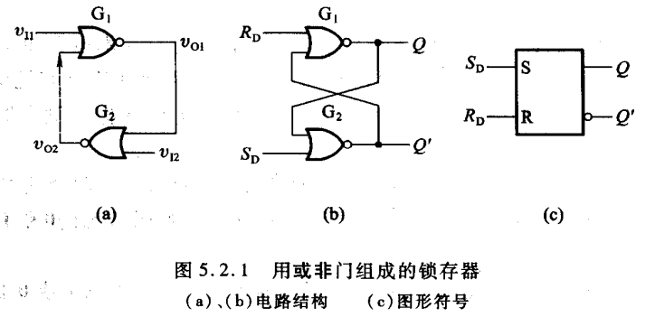 由两个或非门或者两个与非门组成,电路结构、图形符号和特性表如下所示。