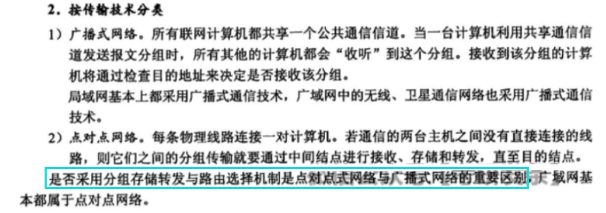 写下本文的原因是笔者在学习计算机网络第一章时看到了下面王道书上的一句话,我不理解这句话想表达的是谁需要“分组存储转发和路由选择机制”。于是当时得出了一个错误的结论,在我后面学了三种交换技术后,我就更加疑惑了.....
