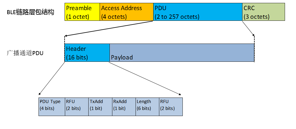 下面以ADV_IND和CONNECT_REQ 为例来展开分析对应PDU