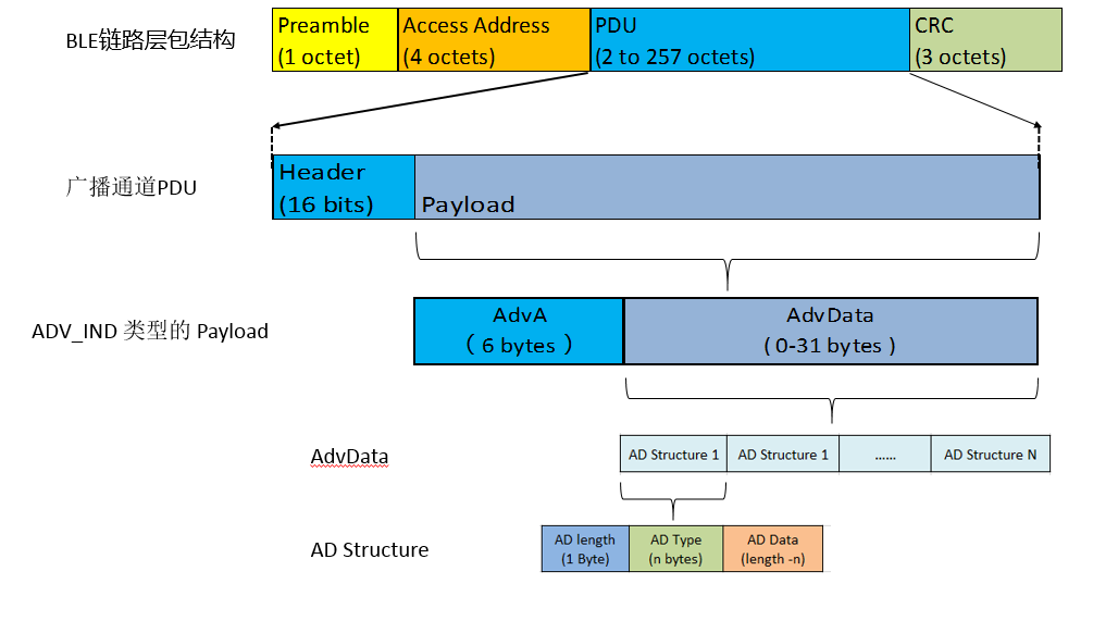 2. 广播数据:即广播类型的PDU,广播所携带的信息。