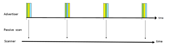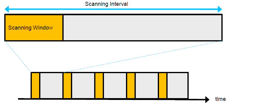 广播者只是在广播通道发送广播数据,并不知道任何scanner的存在,advertiser和 scanner之间也不存在任何同步方式,只有广播和扫描所在的通道随机重合时,广播包才能被扫描设备收到,因此,和广播设备一样,扫描设备也有一些时间参数要求。