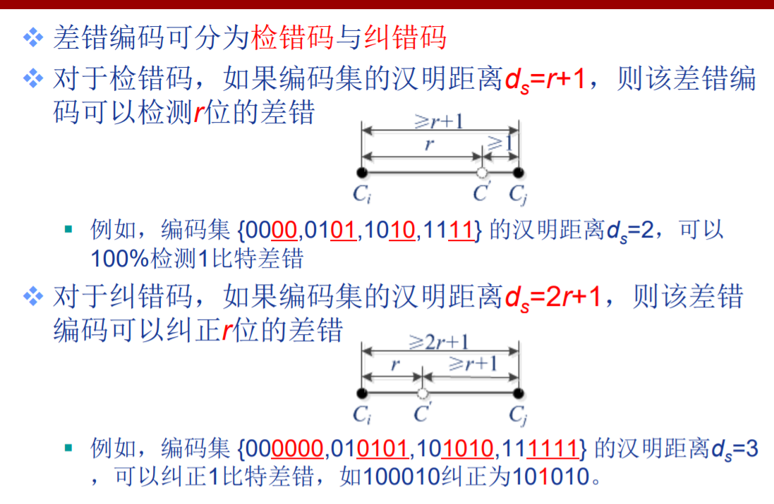 - 检错码,只能检错不能纠错。 纠错码都可以