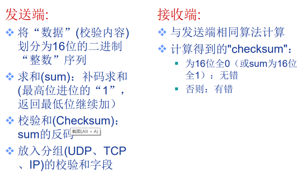 - 接收端检测到差错: • 通知发送端重传或者直接丢弃帧