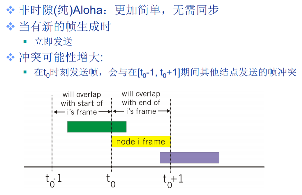 - 虽然效率差,但他是最早的链路协议。aloha是夏威夷问号的意思,有一定的历史意义