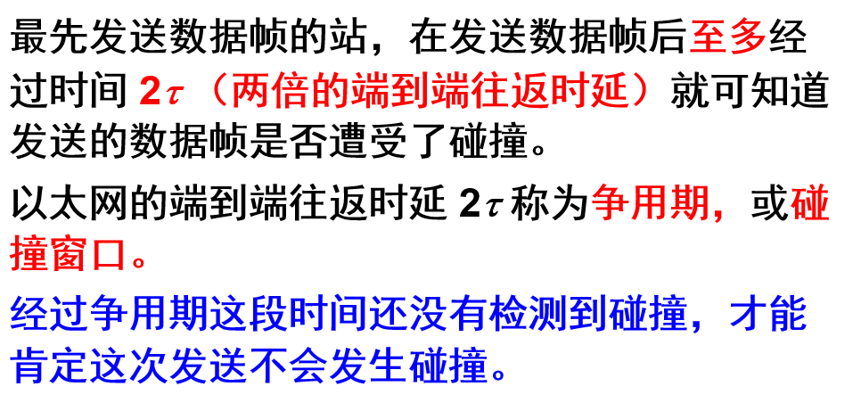 每个站在发送数据之后的一小段时间内,存在着遭遇碰撞的可能性。