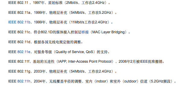 IEEE802.11:无线局域网通用的标准,由IEEE所定义的无线网络通信的标准