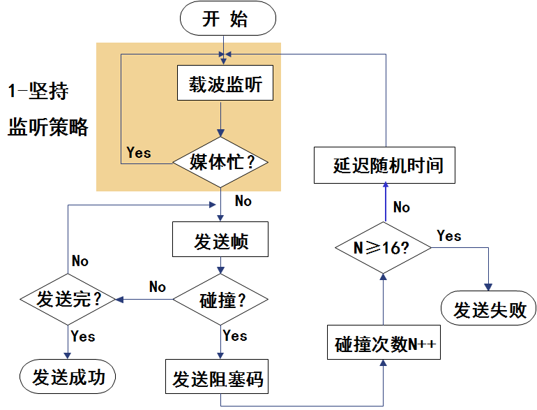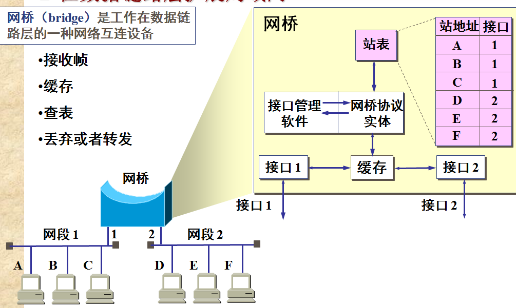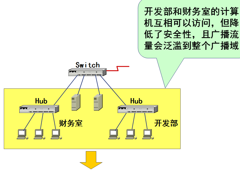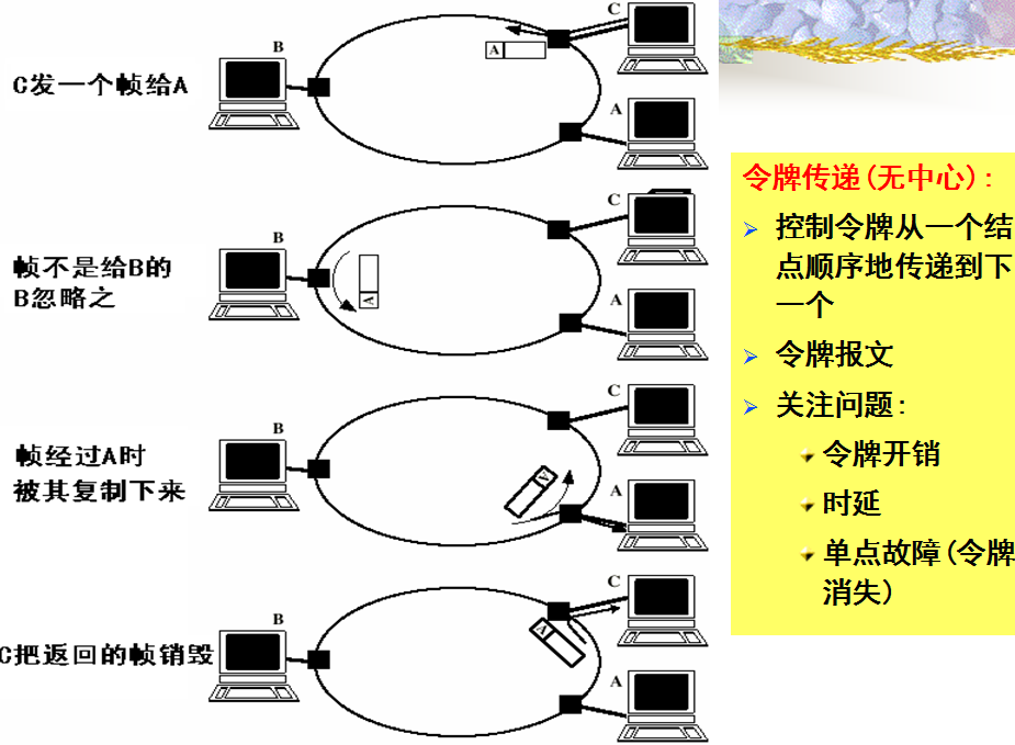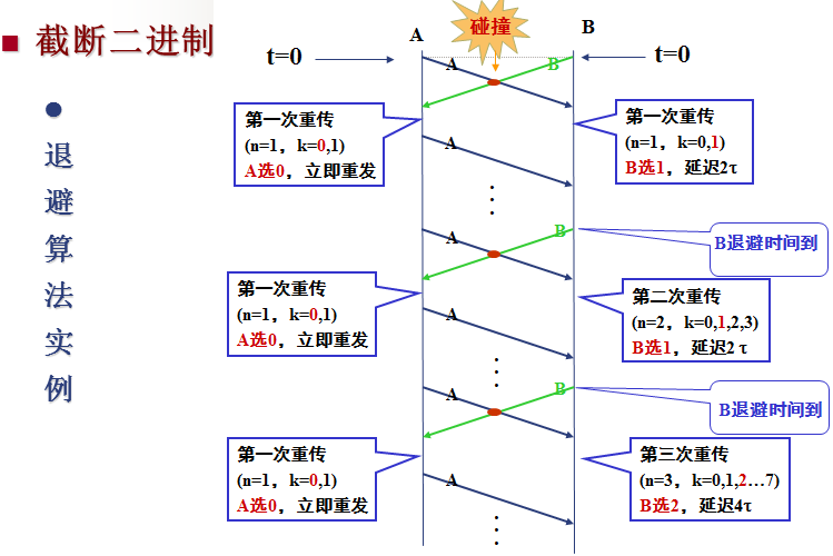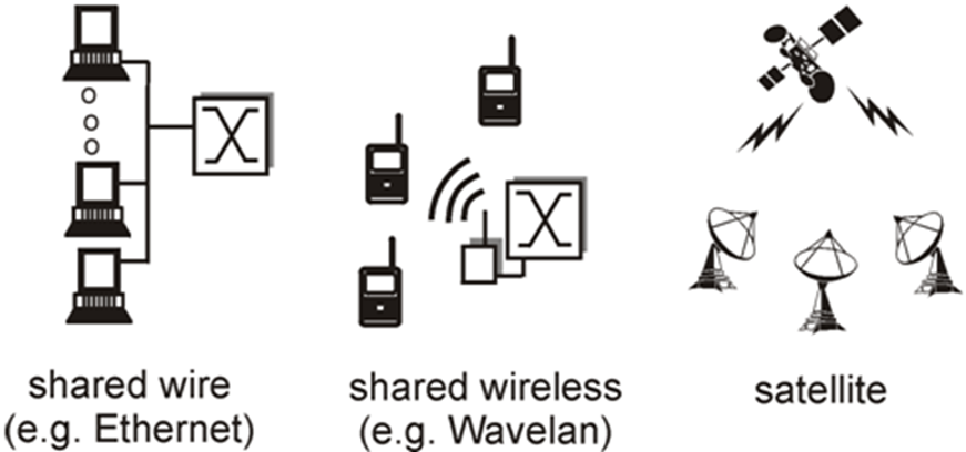 - 总线结构的网络,或者以集线器连接的星形结构的以太网。
