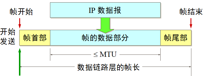 - 每种数据链路层协议都规定了帧的数据部分的长度上限---最大传送单元MTU(Maximum Transfer Unit)。