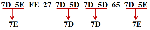 - 将数据部分中出现的每一个标志字段0x7E字节转变成为2字节序列(0x7D,0x5E)。