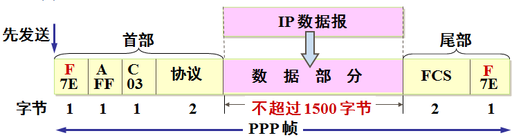 - "01111110"表示一个帧的开始与结束,是PPP帧的定界符。