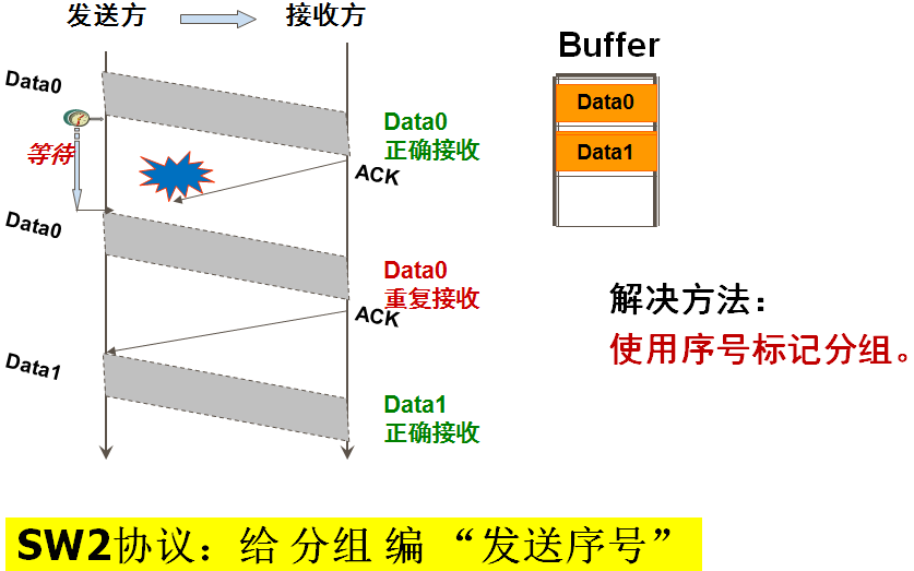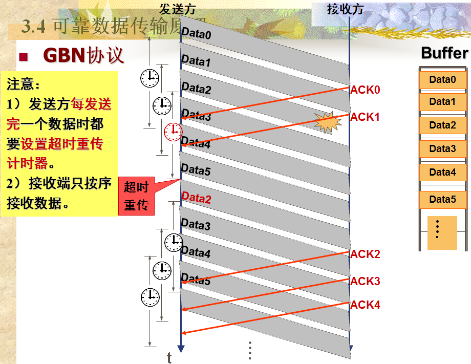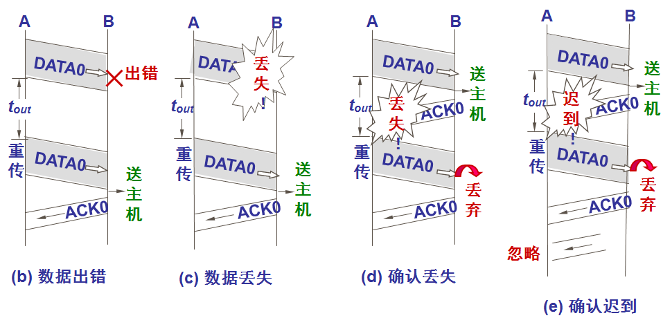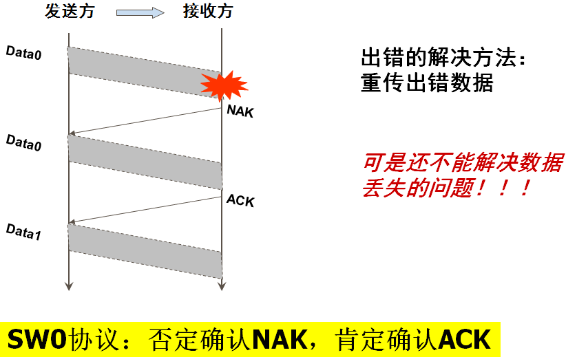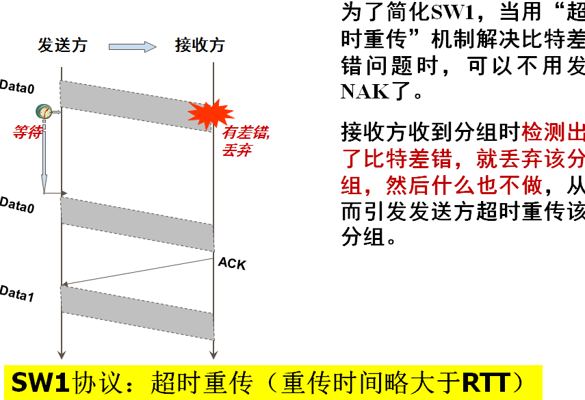 - 检错重传:接收方检测报文受损,就通知发送方重传该报文的副本。