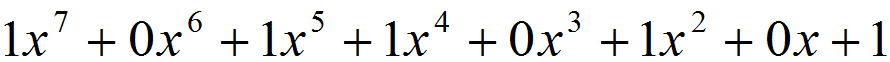 CRC检验采用多项式编码方法。将要发送的比特序列(长度为n)看作是一个n项的二进制多项式(若设k=n-1,k次幂多项式),每个比特值为多项式中每一项的系数:
