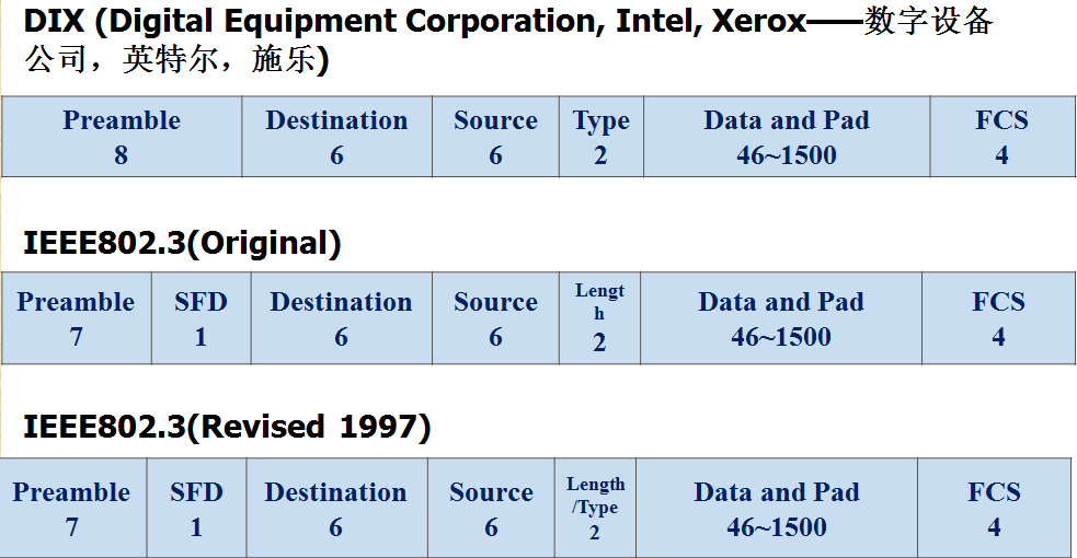 - 原以太网帧的最大长度为1518字节,现在变为1548字节。