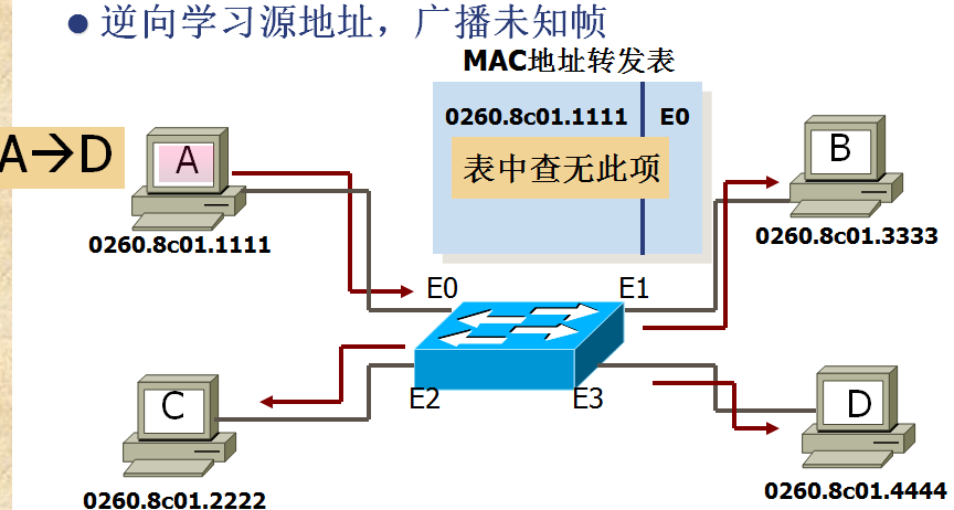 - B1广播数据时,工作站A1,A2和C1都不会收到B1发出的广播信息。