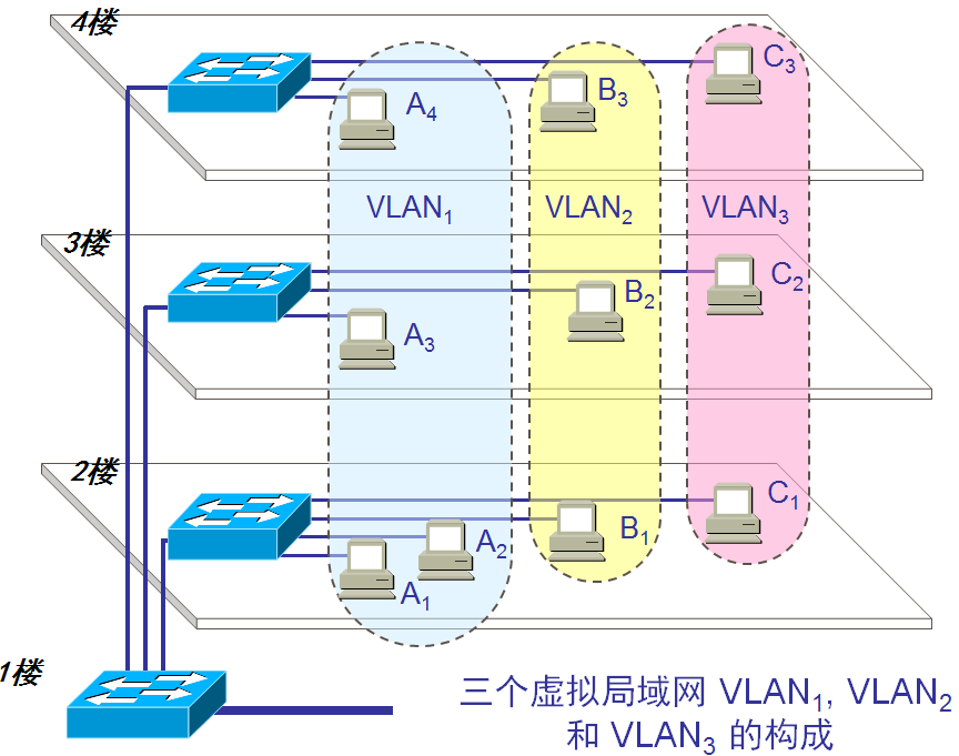- VLAN是一个在物理网络上根据用途,工作组、应用等来逻辑划分的局域网络,与用户的物理位置没有关系。