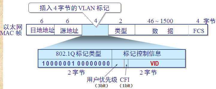 - IEEE802.1Q是以标准以太网帧的形式出现。