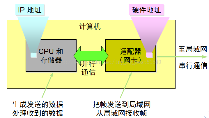 (二)功能:进行串行/并行转换(适配器和局域网之间串行,适配器和计算机之间通过I/O总线并行)