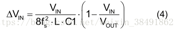 输入电容(C1)用于维持直流输入电压。 建议使用低ESR陶瓷电容器。 输入电压纹波可用公式(4)估算: