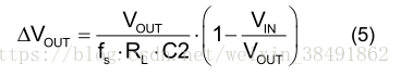 升压转换器的输出电流是不连续的,因此需要一个输出电容器(C2)将AC电流提供给负载。 为获得最佳性能,建议使用低ESR陶瓷电容器。 输出电压纹波可以用公式(5)估算: