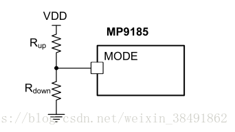 基于MODE设置,MP9185可以工作在强制连续导通模式(FCCM),脉冲跳跃模式(PSM)或超声波模式(USM)。 直接将MODE拉至VDD以便进行FCCM; 浮点模式USM; 将MODE电压从0.2V拉到0.7V,使MP9185工作在PSM模式。 如果PSM阈值没有适当的电压,可以使用从VDD到GND的电阻分压器。