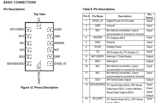 飞思卡尔mma7455 管脚配置图: