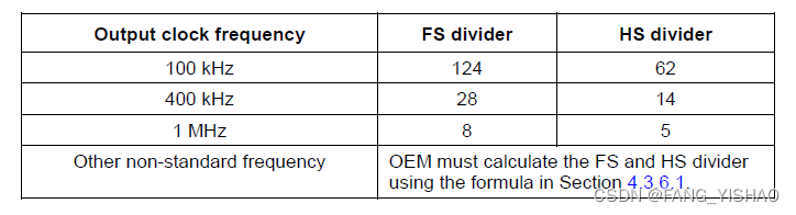 I2C_FS_CLK = I2C_CLK/(fs_div+hs_div+6)