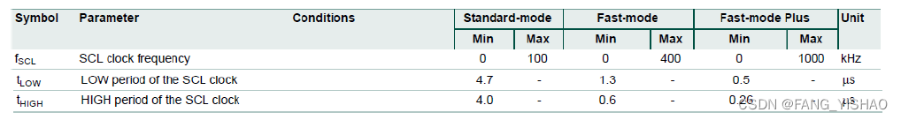 这个表是当前支持的I2C速率,及对应高低电平持续时间参数。【参数配置参考上一个章节】