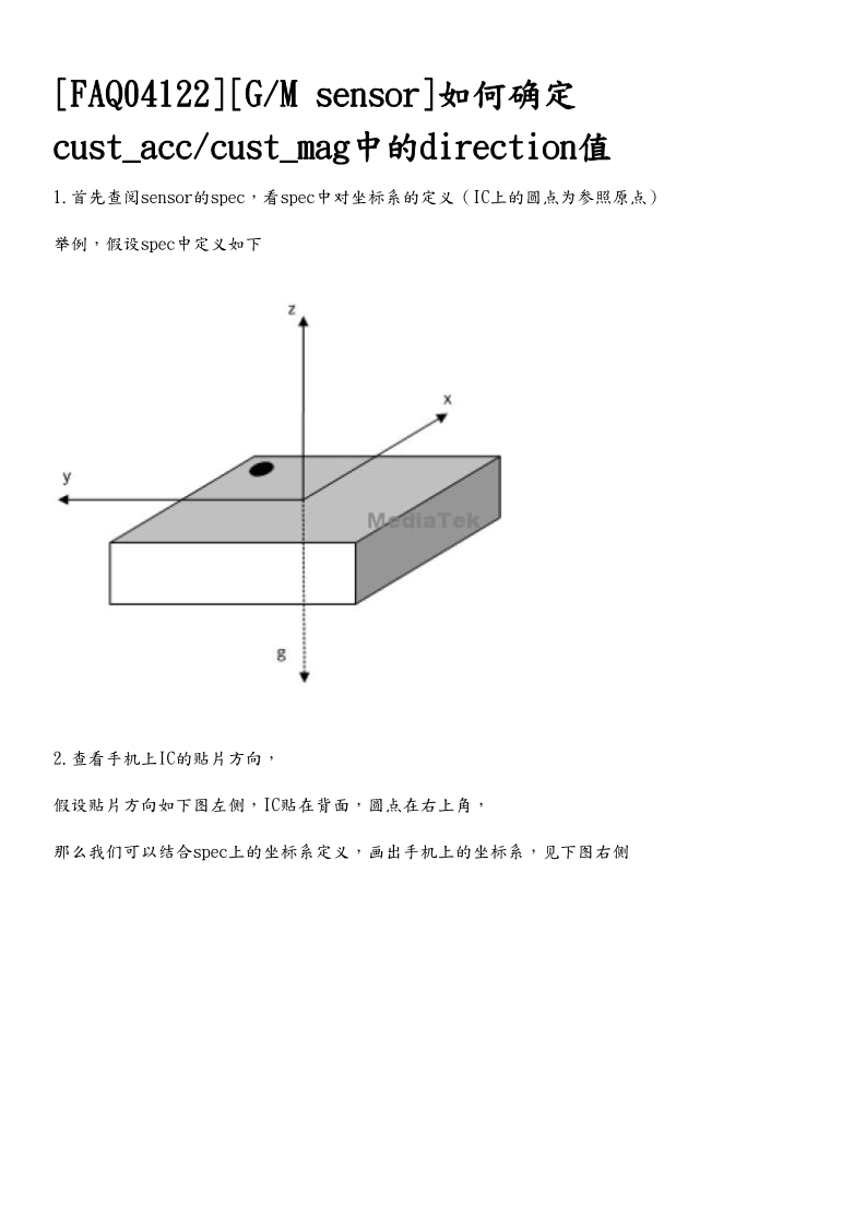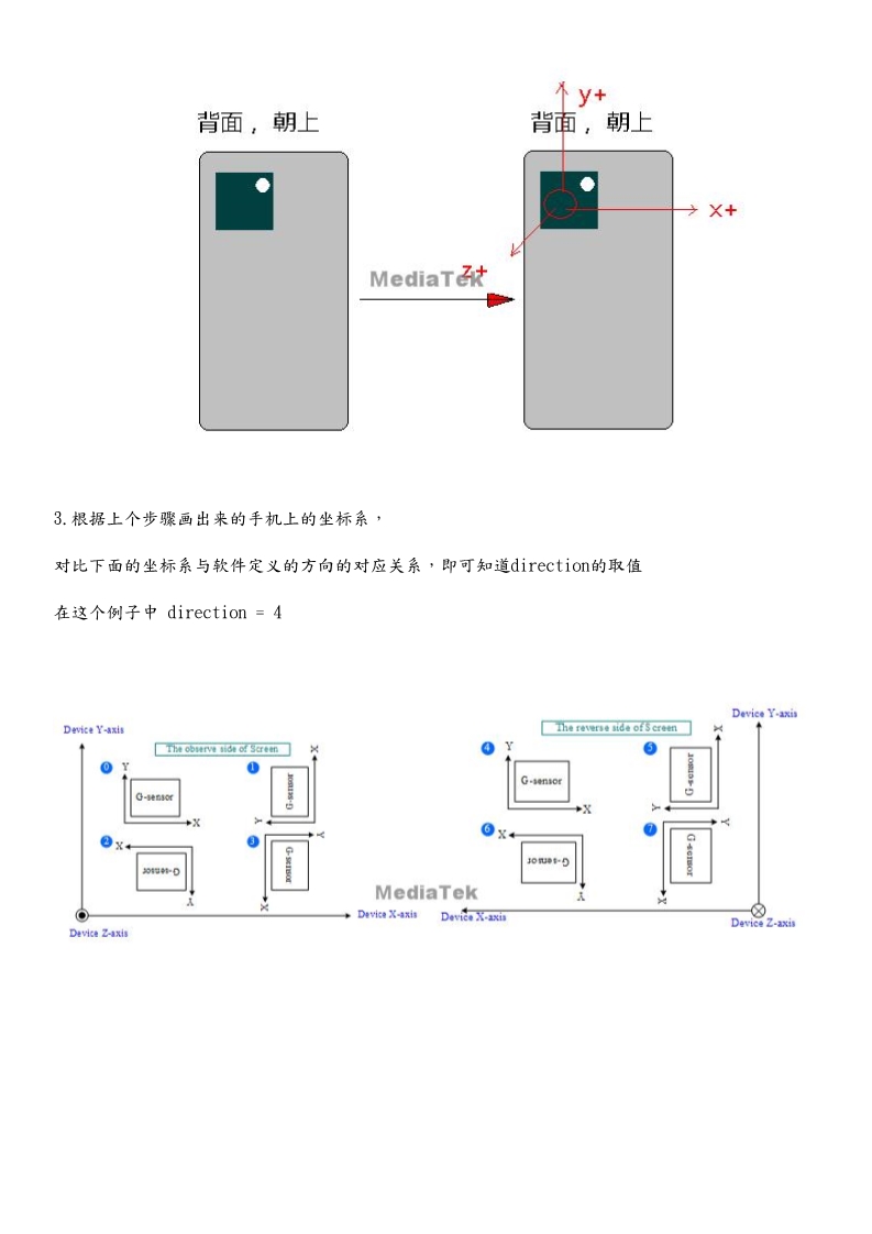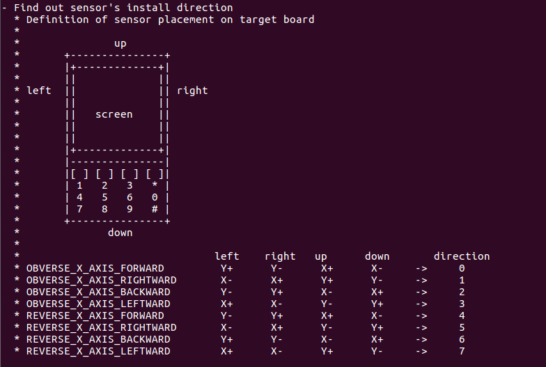 拿到sensor驱动后,编译成功后,如果硬件没有错误,会有数据汇报给上层。接下来就是方向的确定。有些方向在hal层定义或driver层定义,要看具体的代码。需要看芯片规格书和芯片的安装位置来确定。也可以拿一台调试好的手机,通过x,y,z的数据来确定具体的方向。