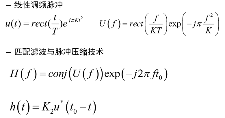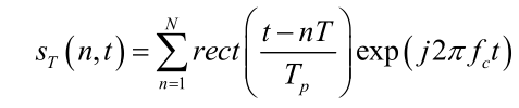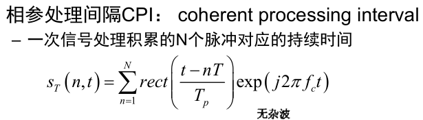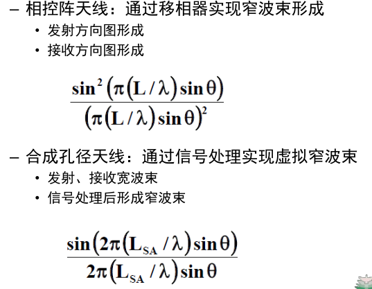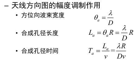 – 使用一个小口径天线,通过空间移动的方式在空间不同位置分别发射和接收信号,通过分时方式形成天线阵列下列两式为双程,之前为单程