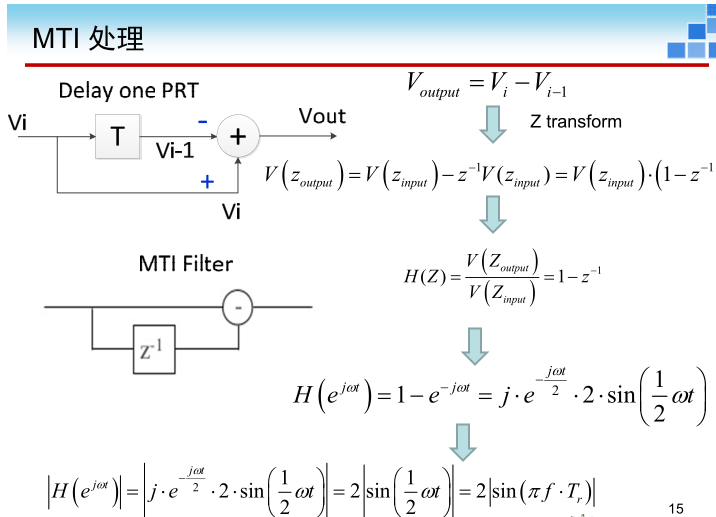 – 使用FFT代替滤波器组,实现更好的杂波抑制能力和速度分辨能力