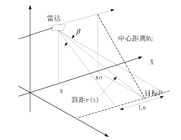 在合成孔径Ts = Ls / v 这段时间内,fd 随时间呈线性变化。故可以将方位向的回波多普勒信号看作是脉宽为Ts 、多普勒中心频率为0、调频率为