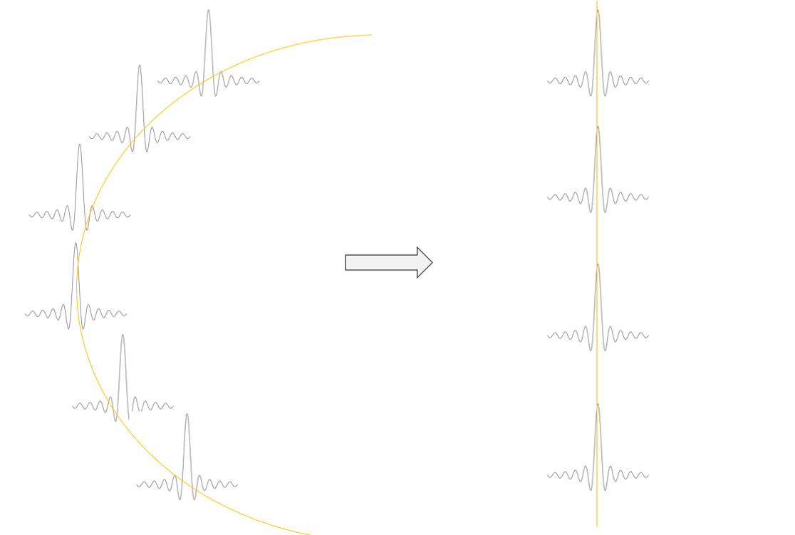 在脉冲压缩后,脉冲峰值对应的时刻就是回波时延即对应目标距离,由于平台的运动,倒是不同慢时间时刻,同一点目标脉冲压缩后峰值不在同一时刻,慢时间域上为一条曲线。需要矫正为直线。