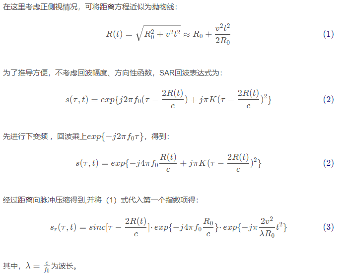 由于雷达与目标之间有相互运动,产生多普勒效应,目标在方位向上的回波的瞬时多普勒频率为: