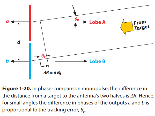 上图为比相单脉冲的基本原理,后面的章节还会有详细介绍,这里就不展开说了。这3种技术都是很经典的方法,后两种技术目前还有很多雷达在用,当然还有几种先进的技术,后面再说。