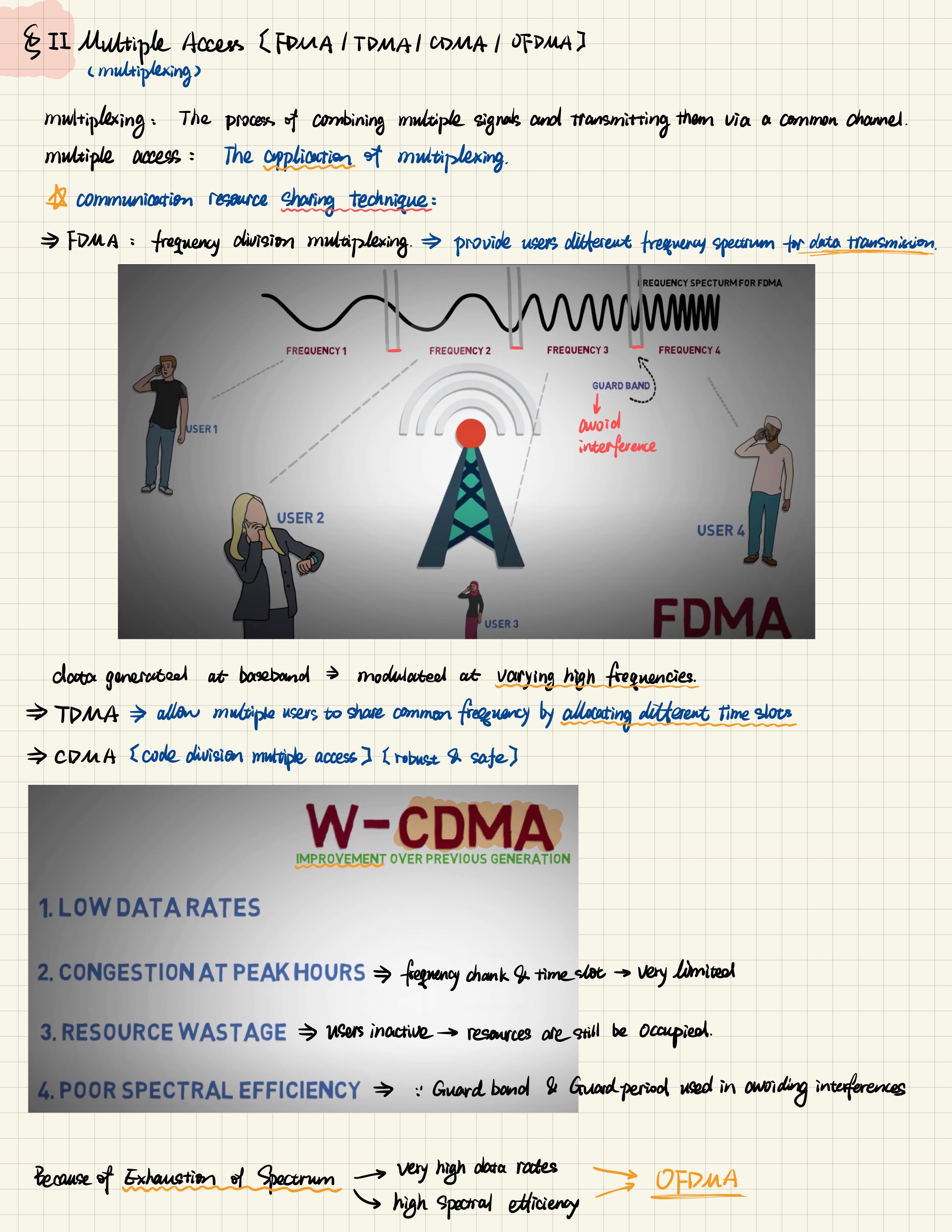 (2)Multiple Access (FDMA/TDMA/CDMA/OFDMA)