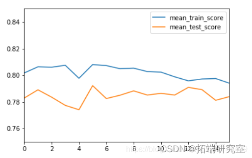 查看最终参数选择的结果和交叉验证的结果: