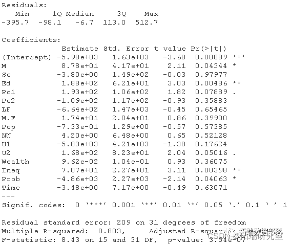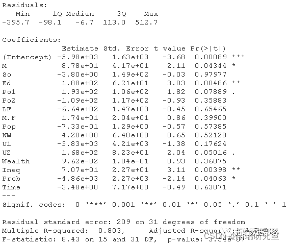 犯罪学家对惩罚制度对犯罪率(查看文末了解数据免费获取方式)的影响感兴趣。已使用汇总数据对此进行了研究。数据集包含以下列:
