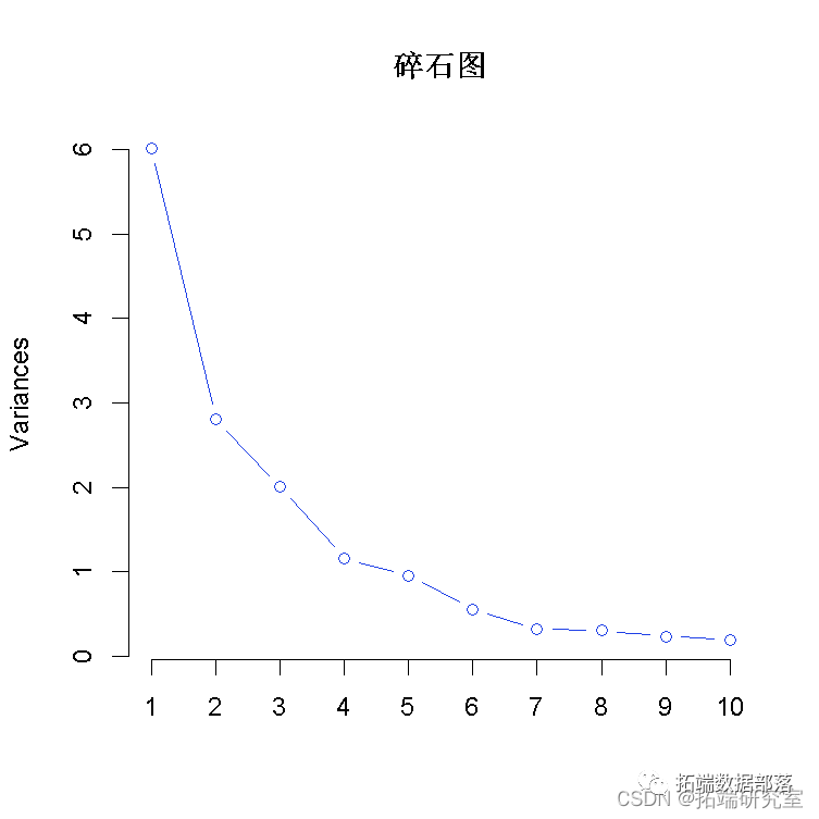 然后,我们可以通过绘制每个主成分的方差来决定在 "前几个 "主成分中使用多少个主成分。