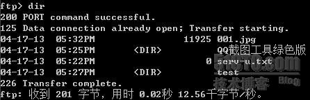 连接到FTP站点之后,首先可以执行dir或是ls命令显示文件列表。