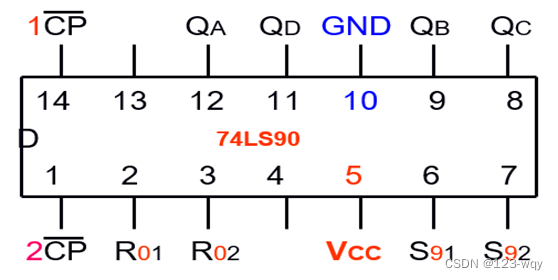 1)使用的芯片2-5-10进制计数器(74LS90),画出引脚图、功能表。