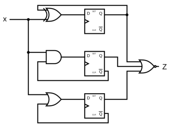 Write the Verilog code for this sequential circuit (Submodules are ok, but the top-level must be named