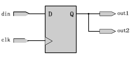 module top_module ( input clk, input din, output reg out1,out2 ); always @(posedge clk) begin out1 = din; //使用阻塞性语句 out2 = out1; end endmodule