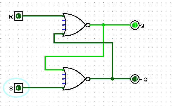 分析当SR都为0时的情况(上与非门为N1,下与非门为N2):