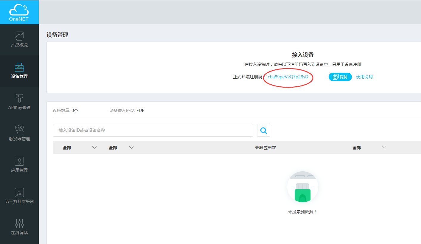 URL为:http://api.heclouds.com/register_de?register_code=